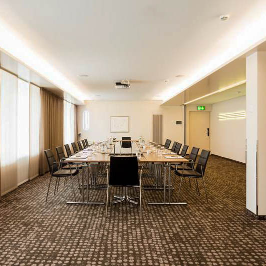 Der Seminarraum fasziniert mit seiner Einfachheit und Vornehmheit. Der erstklassige Holzboden harmoniert perfekt mit modernster Präsentationstechnik und macht den Raum ideal für strategische und exklusive Sitzungen.