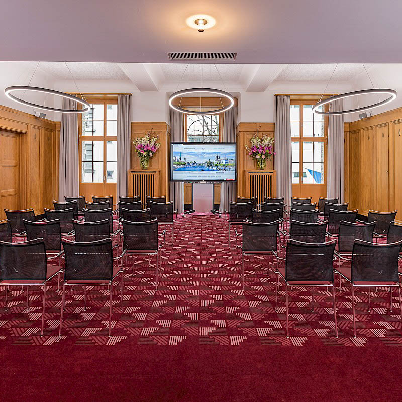 Raum A besticht durch seine edle und klassische Ausstattung, zentral und verkehrsgünstig gelegen und eignet sich hervorragend für grössere Veranstaltungen verschiedenster Art. Grosszügige Fensterfronten, eine geschmackvolle Einrichtung und eine Bühne schaffen den perfekten Rahmen für Anlässe, Kongresse oder private Feste.