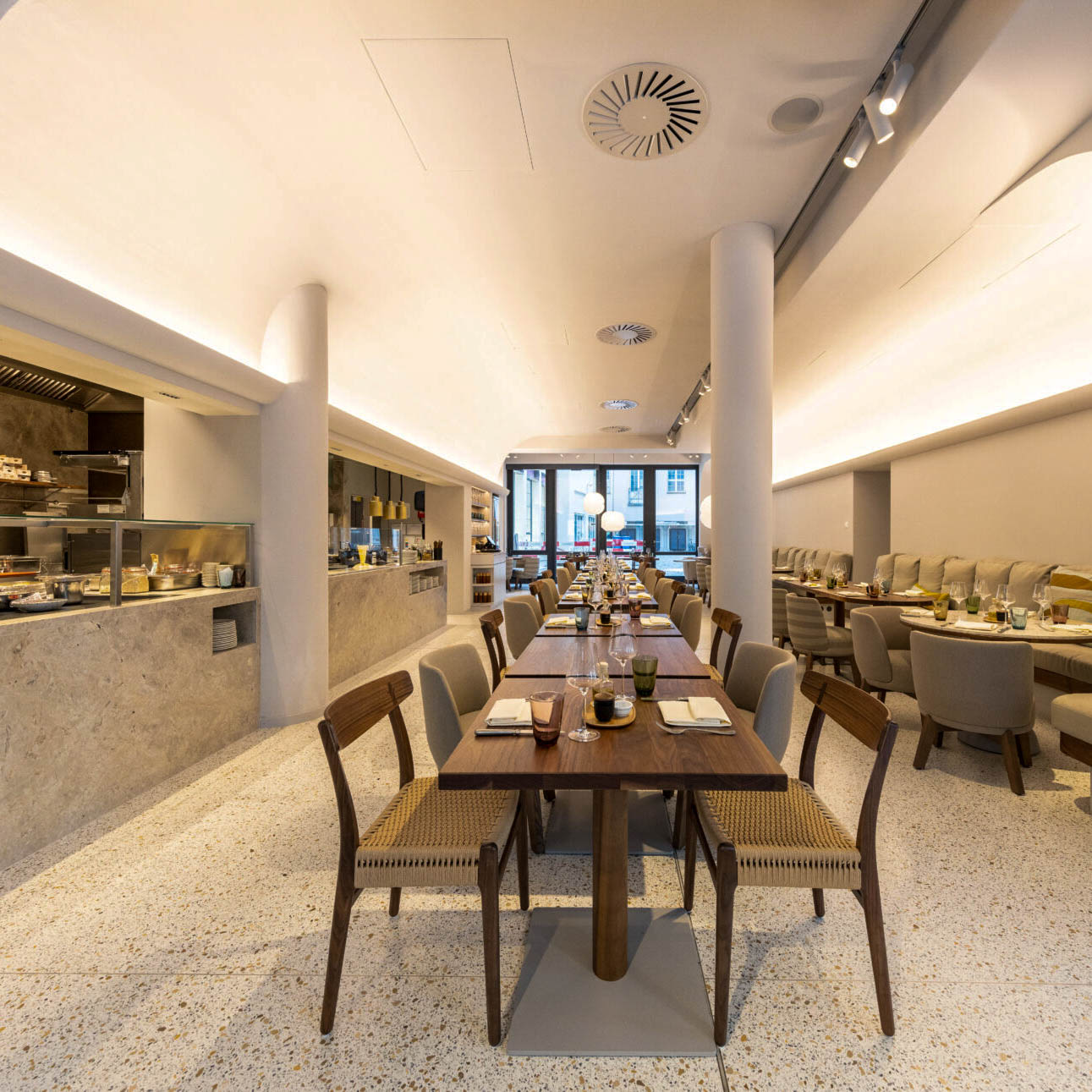 Das Restaurant Enja beeindruckt mit moderner, zeitloser Architektur und einem lichtdurchfluteten Gewölbe. Nur wenige Schritte von der berühmten Bahnhofstrasse entfernt, kann dieser besondere Ort exklusiv für kulinarische Events gemietet werden. Bei schönem Wetter lädt die elegante Terrasse zum Verweilen und Anstossen ein – ideal für Projektabschlüsse und Firmenjubiläen.